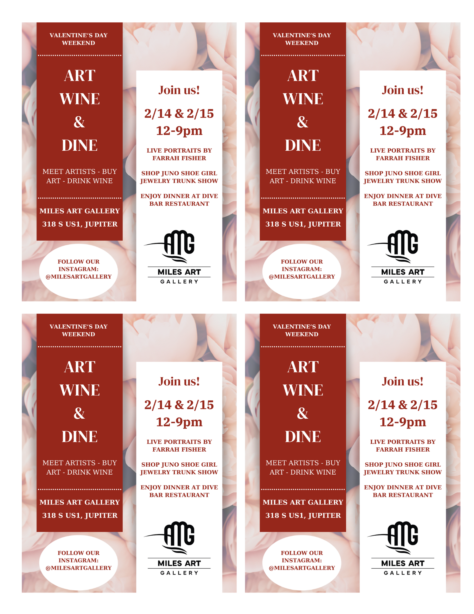 Grab your sweetheart! Sip wine and enjoy colorful art by local artists, and dine at @thedivebarrestaurant 🐠 On February 14th and 15th from 12-9pm, Miles Art Gallery will be open to the public for a special Valentines weekend event. Live Portraits by @farrah_fisher_art on Friday and Saturday evening. This is a special event you won’t…