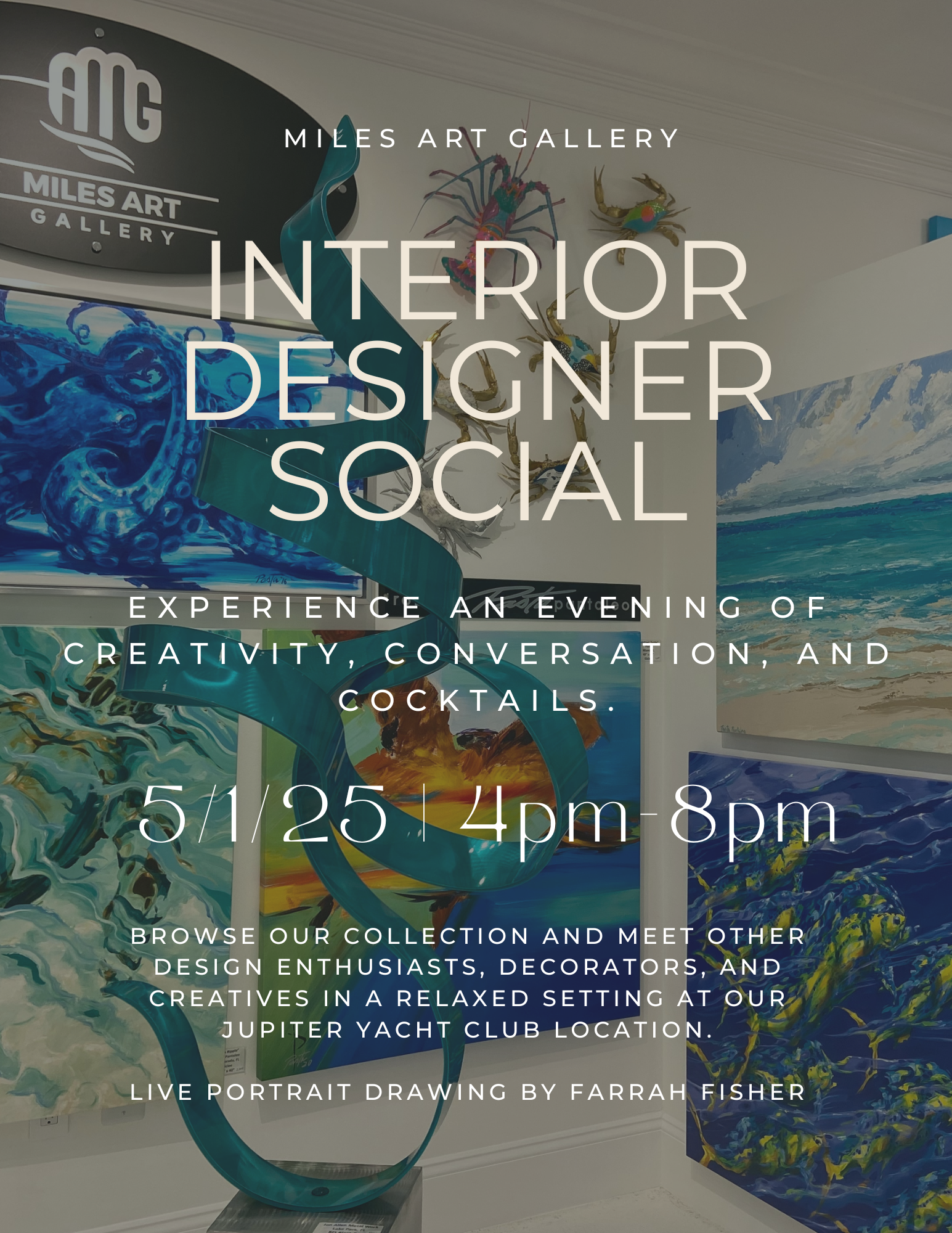 Join us for the Miles Art Gallery Opening Night this Saturday, February 1st from 5-8pm. Experience fine art made by local artists, live painting, and enjoy complementary sushi and cocktails by @thedivebarrestaurant sponsored by @benettiyachts This is an exclusive one night only event.